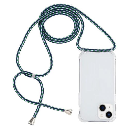 Funda Protectora Acrílico para iPhone 15 a Prueba de Golpes con Cordón (Verde, Blanco, Azul)