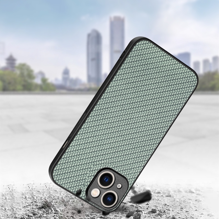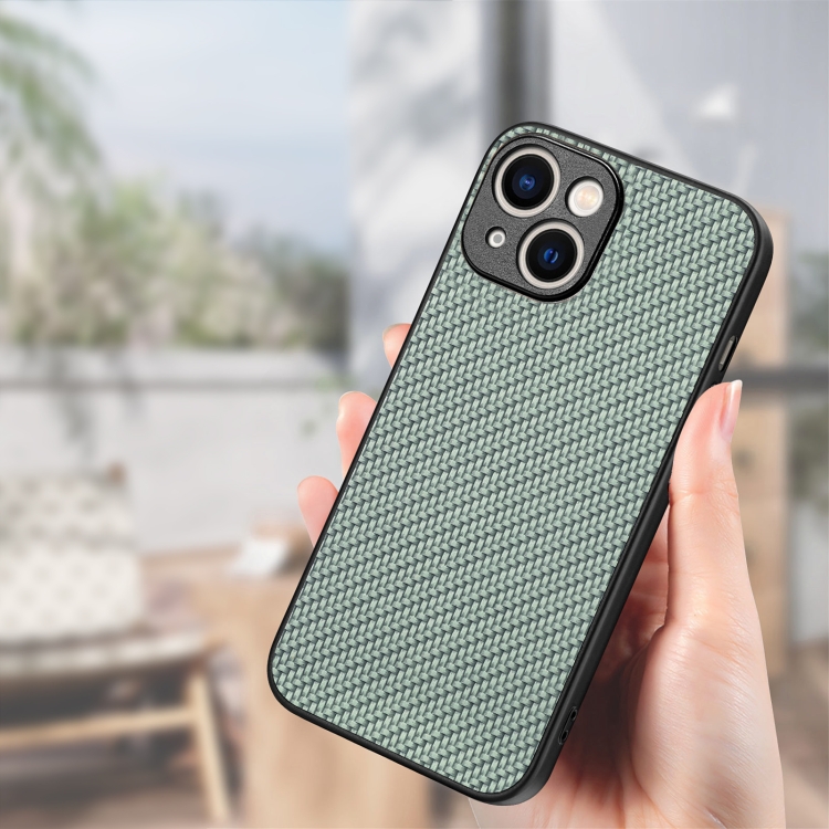 Funda Trasera para iPhone 15 Cuero con Textura de Fibra de Carbono (Verde)