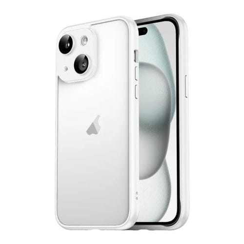 Marco de Borde Puro para iPhone 15 Macaron con Película de Vidrio para Lentes (Blanco)