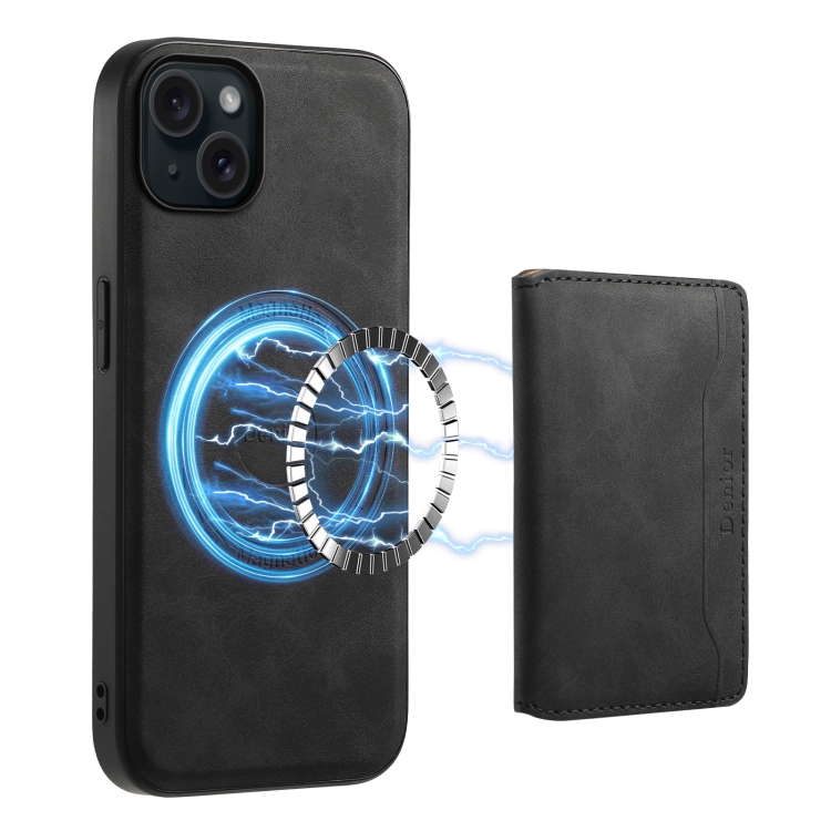 Funda para Teléfono Denior D13 para iPhone 15 Plus con Bolsa para Tarjeta Magsafe de Cuero (Negro)