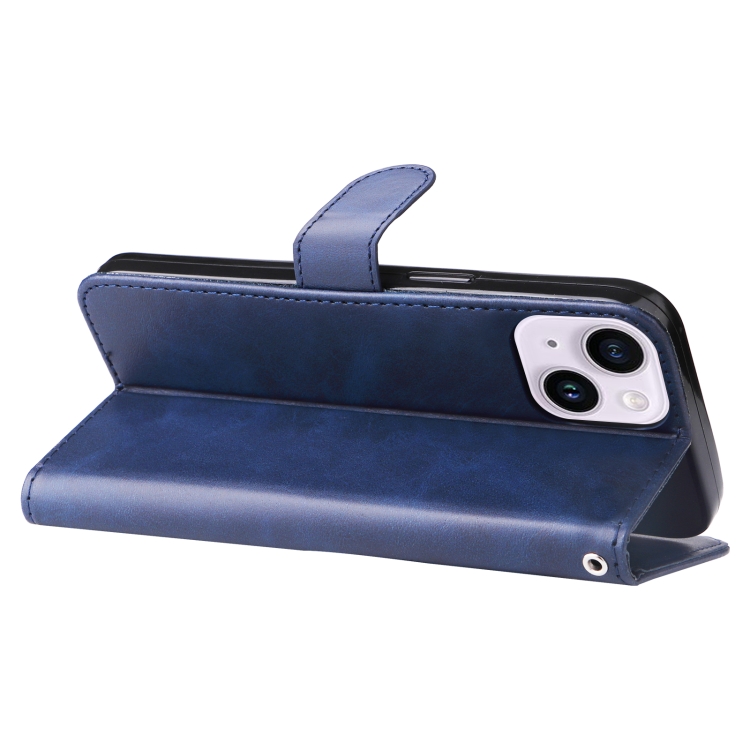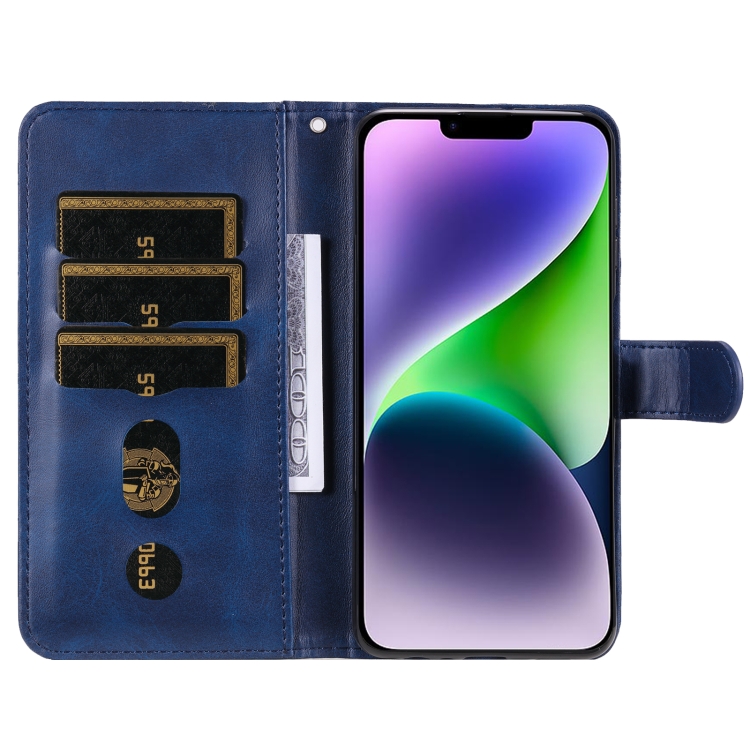 Funda para iPhone 15 Plus Becerro Textura Cremallera Cuero (Azul)
