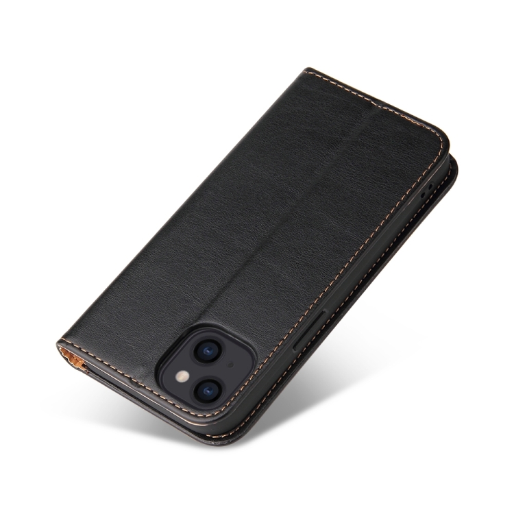 Funda de teléfono Fierre Shann para iPhone 15 Plus con textura de cuero genuino (Negro)