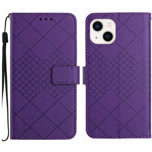 Funda de Cuero para iPhone 15 Plus con Textura de Rejilla Rómbica (Púrpura)
