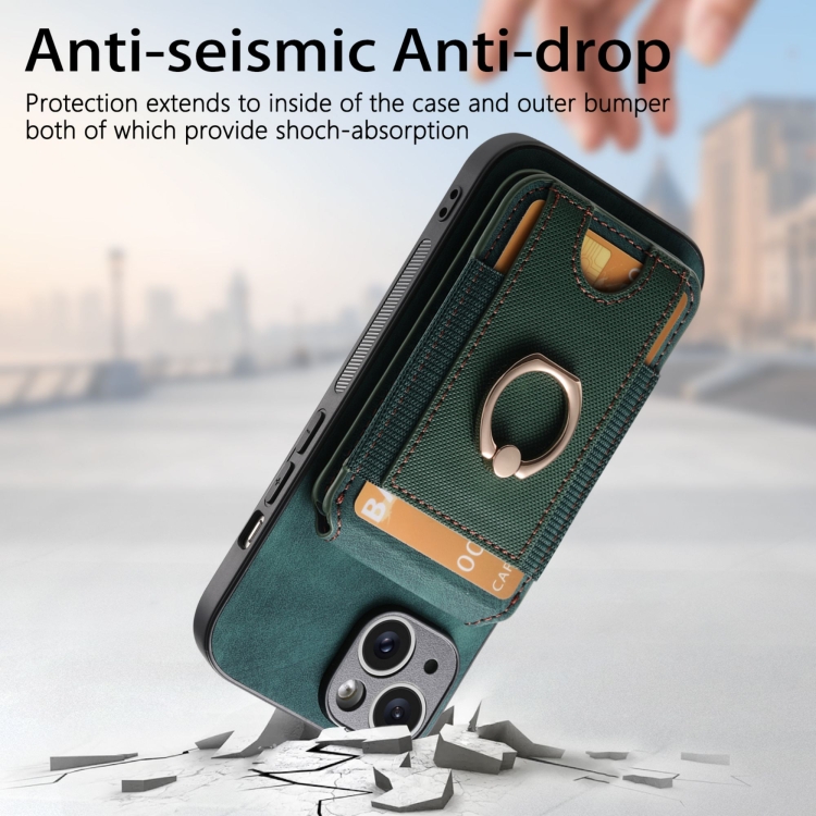Funda de Cuero para iPhone 15 Plus con Soporte Magnético Divisible Retro y Bolsa para Tarjetas (Verde)
