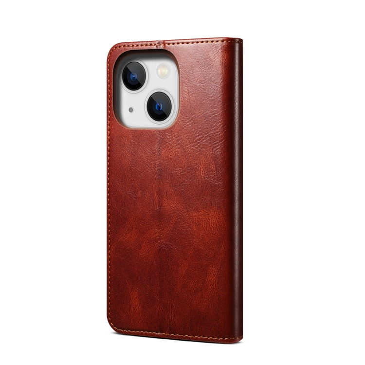 Funda de Cuero Oil Wax Crazy Horse para iPhone 15 Plus (Marrón)