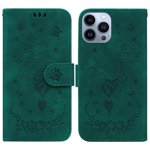 Estuche para Teléfono iPhone 15 Pro Butterfly Rose Cuero en Relieve (Verde)