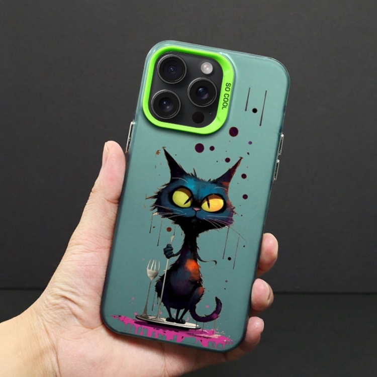 Funda para iPhone 15 Pro Color Ink Frosted PC con Estuche TPU (Gato Negro)