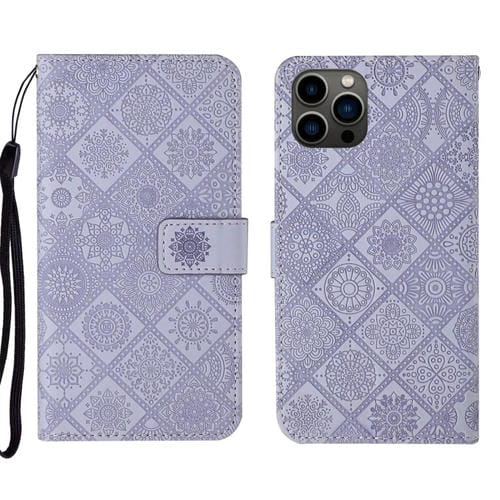 Estuche para Teléfono iPhone 15 Pro Cuero Patrón En Relieve Estilo Étnico (Púrpura)