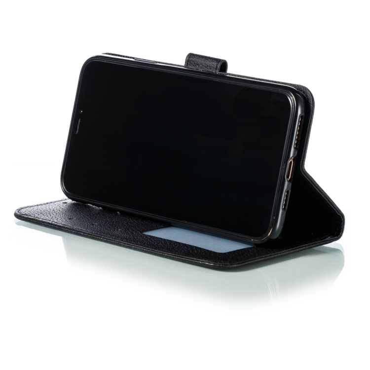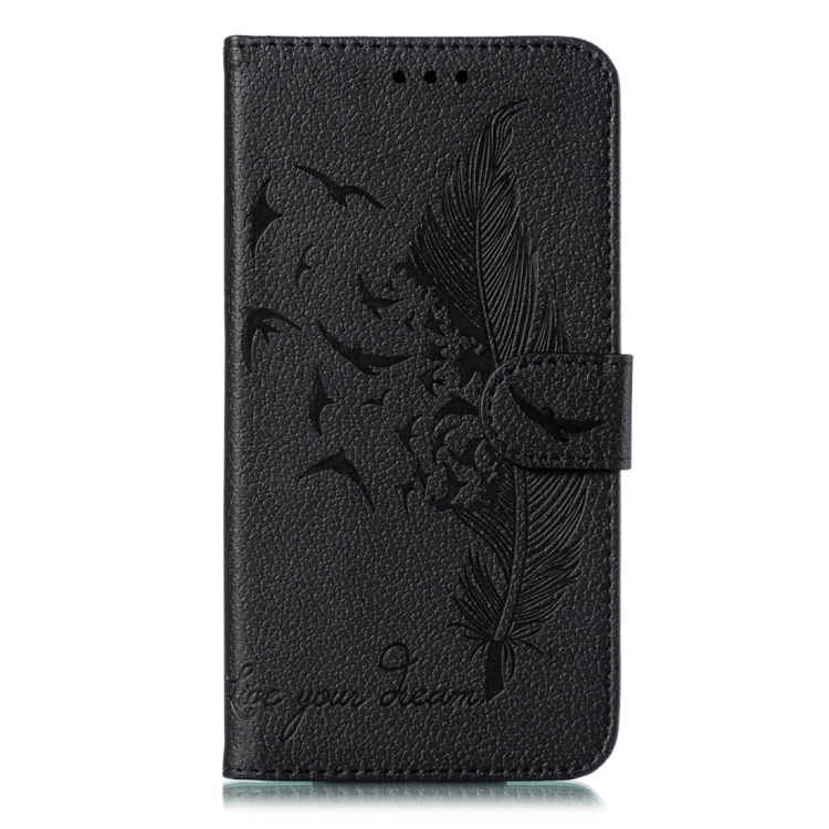 Estuche para Teléfono iPhone 15 Pro Cuero Textura Litchi Patrón Plumas (Negro)
