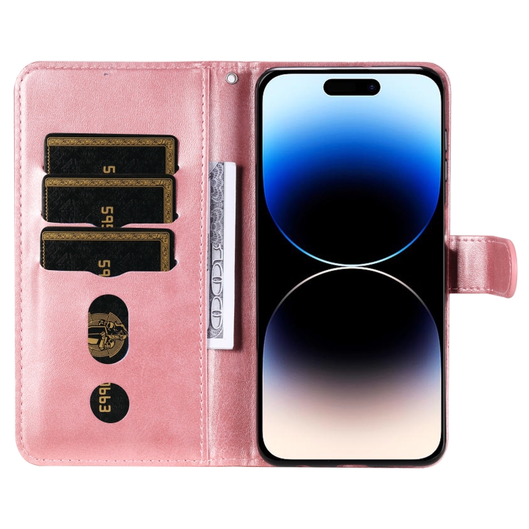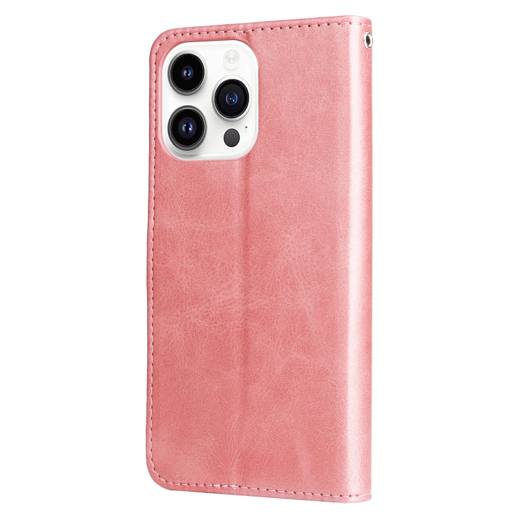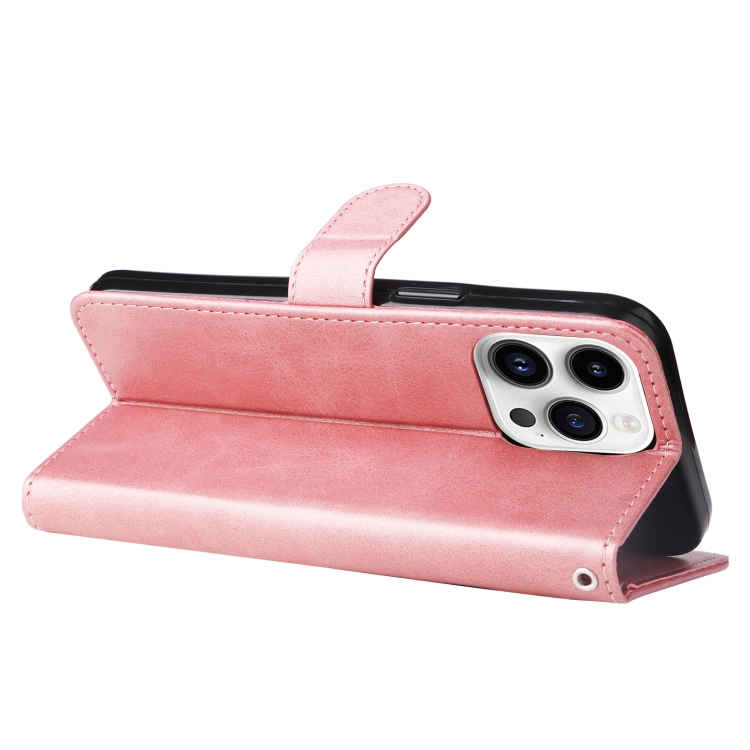 Funda de Cuero para Teléfono iPhone 15 Pro Fashion Becerro Textura Cremallera (Oro Rosa)