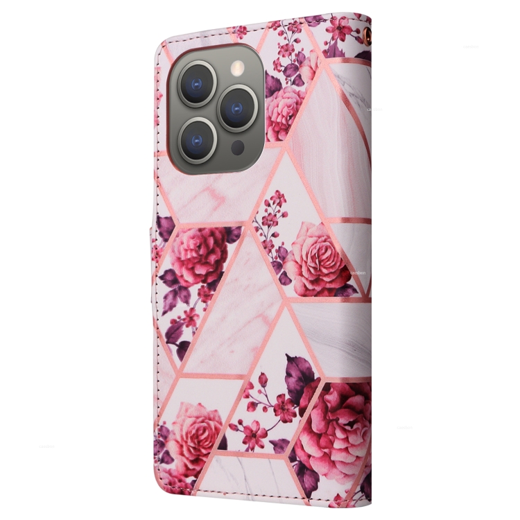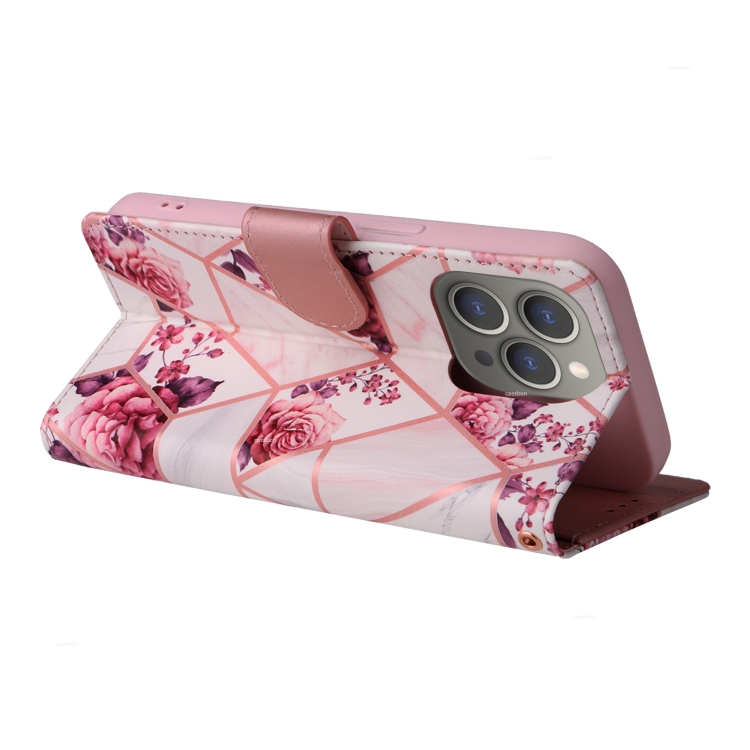 Funda de Cuero para Teléfono iPhone 15 Pro con Costuras Bronceadoras de Mármol (Oro Rosa)