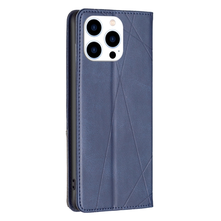 Funda de Teléfono iPhone 15 Pro Cuero Magnético Textura de Rombos (Azul)