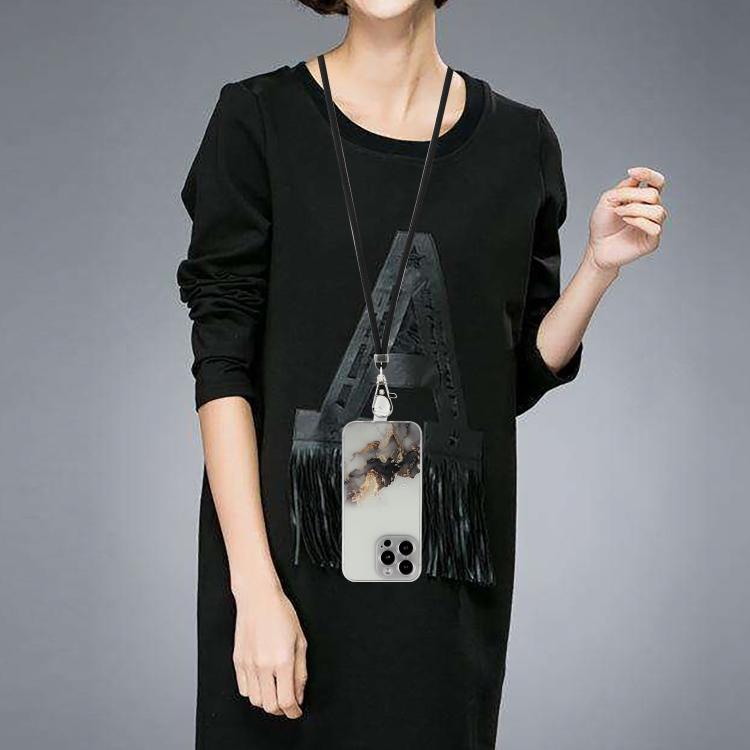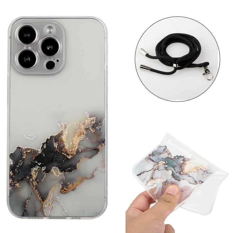 Estuche para Teléfono TPU iPhone 15 Pro Hollow Marble Pattern a Prueba de Golpes con Cuerda (Negro)