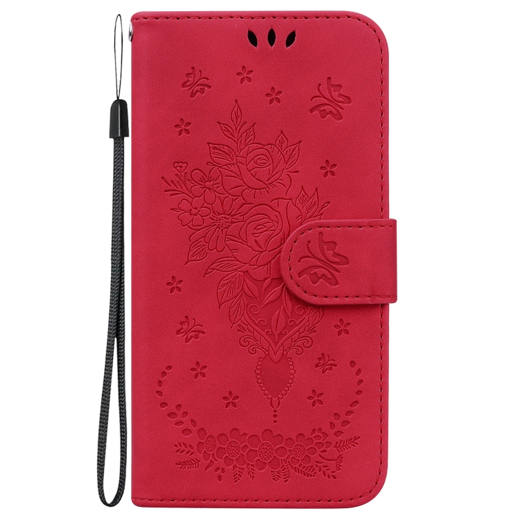 Estuche para Teléfono iPhone 15 Pro Max Butterfly Rose Cuero En Relieve (Rojo)