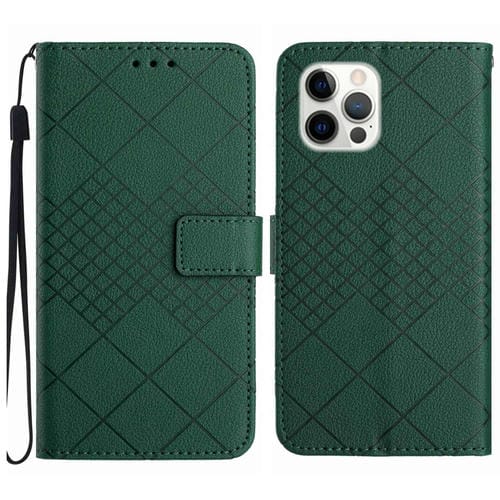 Estuche para Teléfono iPhone 15 Pro Max Cuero Textura Rejilla Rómbica (Verde)