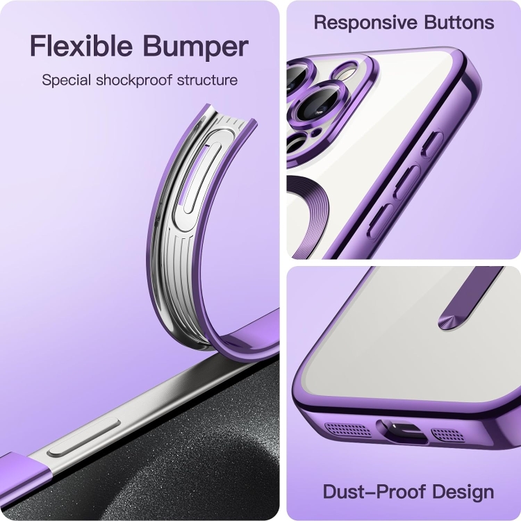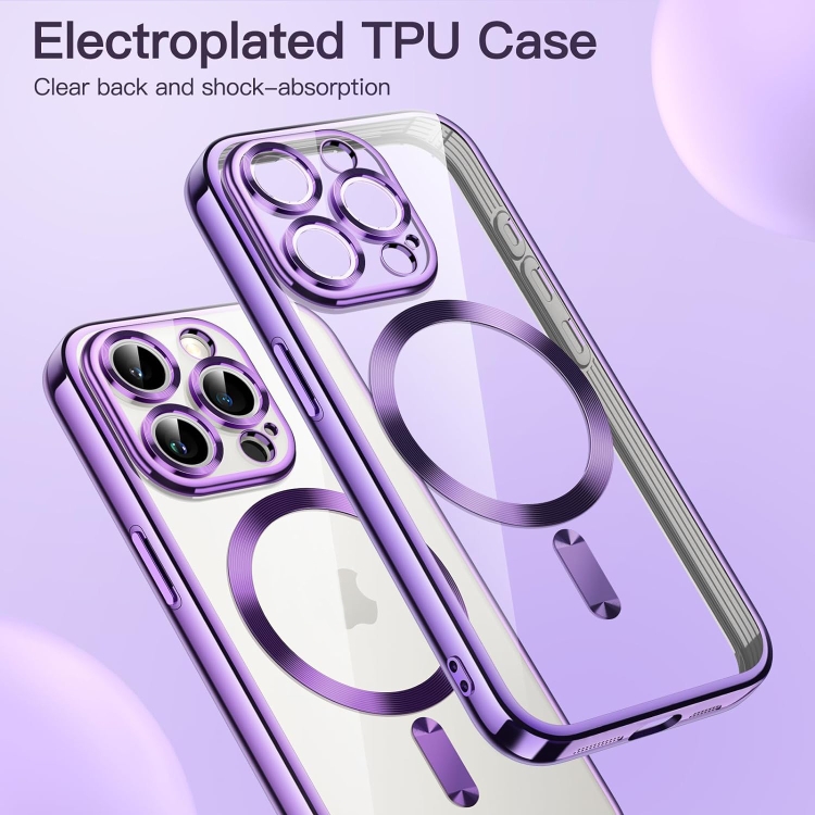 Funda para Teléfono TPU Apple iPhone 15 Pro Max Electrochapada Transparente Magnética (Púrpura)