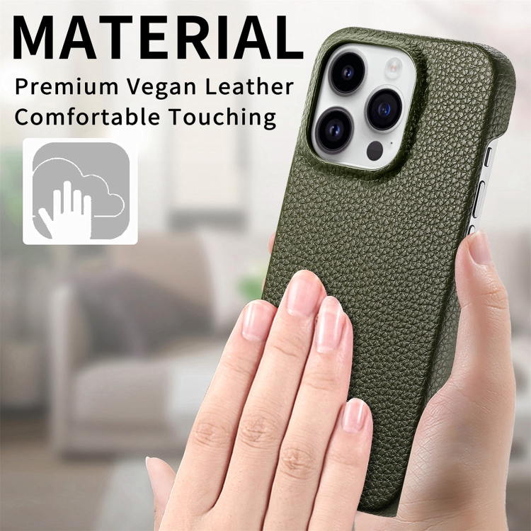 Funda Trasera para iPhone 15 Pro Max Litchi Oil Edge Cuero (Verde)