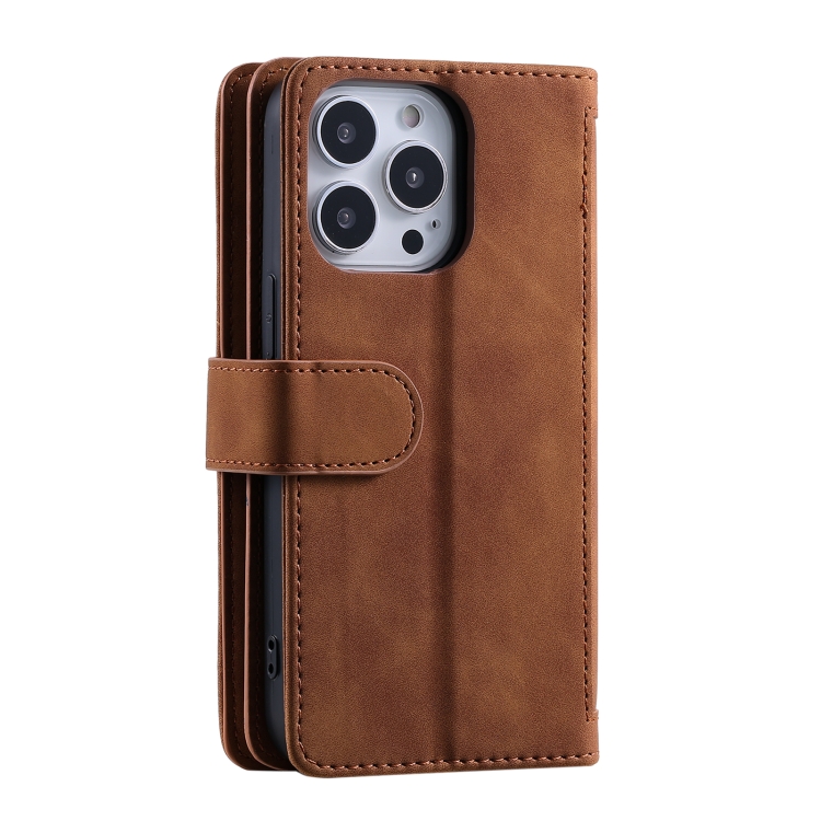 Funda para teléfono iPhone 15 Pro Nine Card Zipper Bag de cuero con cordón (Marrón)