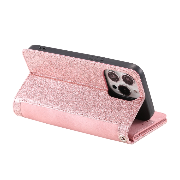Funda para Teléfono Nine Card Zipper Bag iPhone 15 Pro Cuero con Cordón (Rosa)