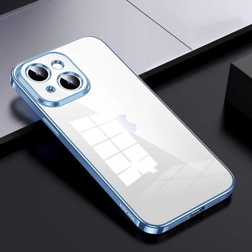 Funda para iPhone 15 Sulada Shine Through Series Plating TPU Transparente (Azul Sierra)