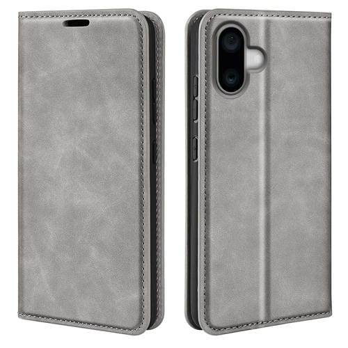 Funda para iPhone 16 Plus de Cuero con Succión Magnética de Piel Retro (Gris)