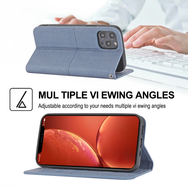 Funda para Teléfono iPhone 16 Pro Max Cuero Magnético con Costura y Textura Tejida (Gris)