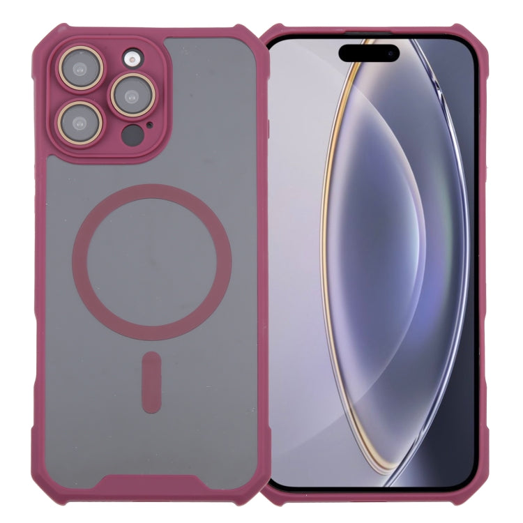 Funda para iPhone 16 Pro Acrílico + TPU con Película de Lente Dos Colores y Bocina Magnética Magsafe (Roja)