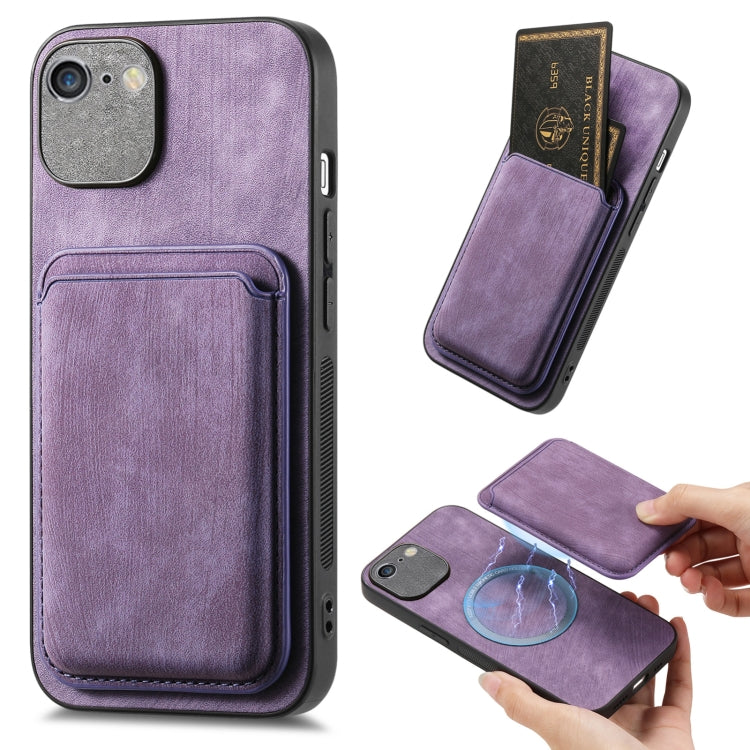 Funda de Teléfono iPhone 6/6S Magnética con Bolsa de Tarjeta Cuero Retro (Púrpura)