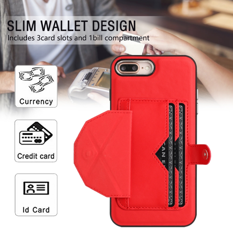 Estuche de Teléfono Apple iPhone 6 Plus 7 Plus 8 Plus Cuero a Prueba de Golpes con Tarjetero (Rojo)
