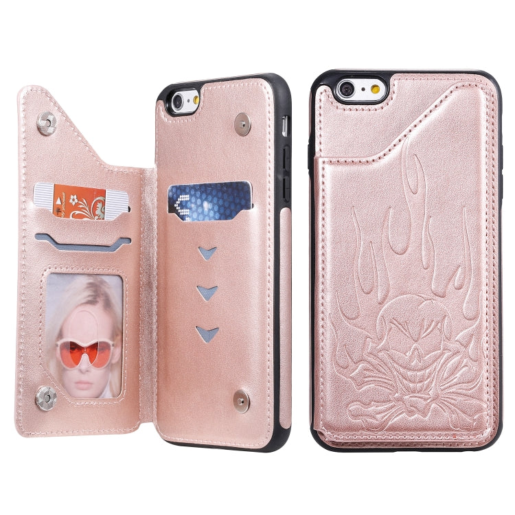 Estuche protector iPhone 6S Plus 6 Plus Skull Head Patrón en relieve con soporte y ranuras para tarjetas (Oro Rosa)