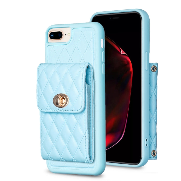 Estuche de Teléfono iPhone 7 Plus 8 Plus Cuero Rómbico Hebilla Metal Vertical (Azul)