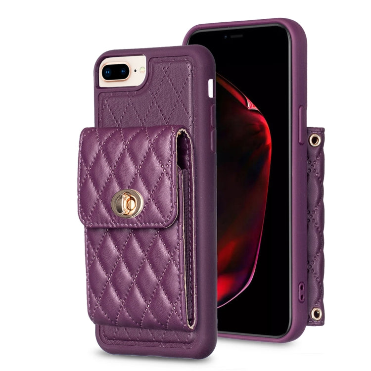 Estuche de Teléfono iPhone 7 Plus 8 Plus Cuero Rómbico con Hebilla Metal Vertical (Púrpura Oscuro)