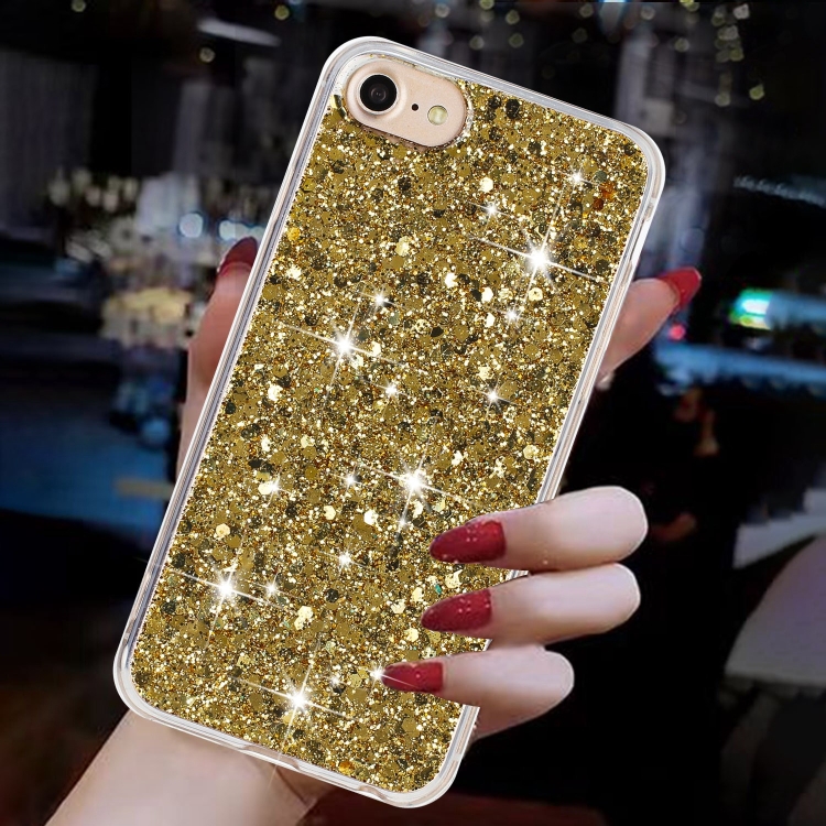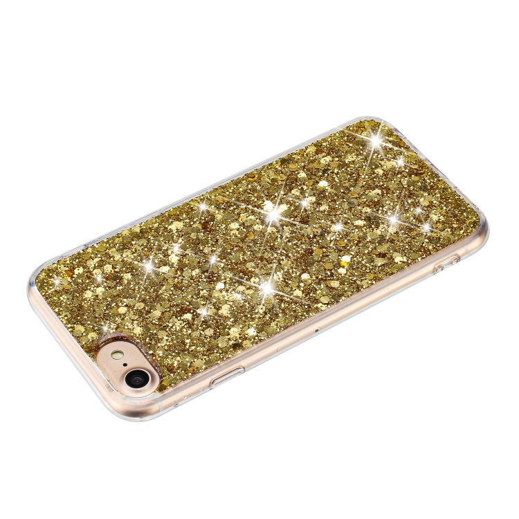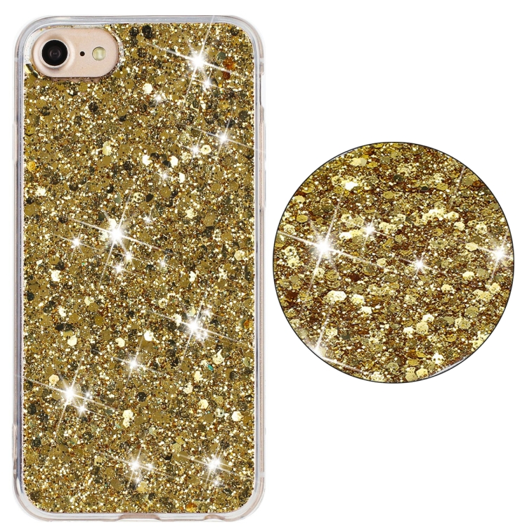 Funda para Teléfono TPU iPhone 8/7 con Polvo de Brillo y Marco Transparente (Dorado)