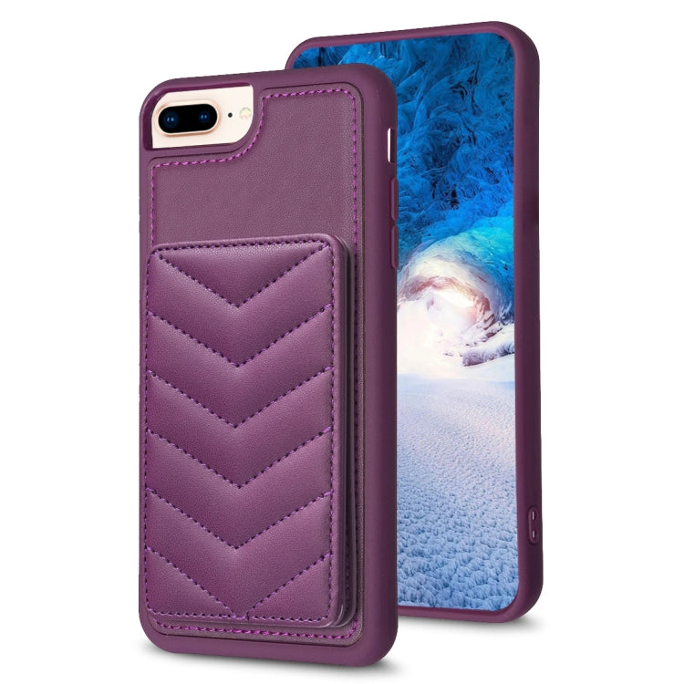 Funda para Teléfono Bf26 Wave Pattern para iPhone 8 Plus y 7 Plus con Porta Tarjetas (Morado Oscuro)