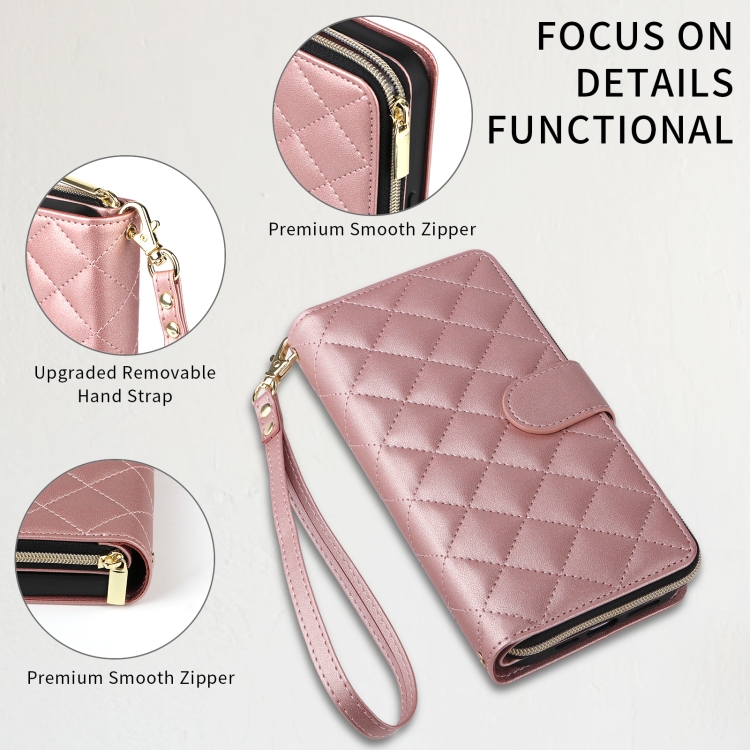 Funda cruzada de cuero para iPhone 8 Plus/7 Plus con hebilla de torre y cremallera rómbica con cordón (Oro Rosa)