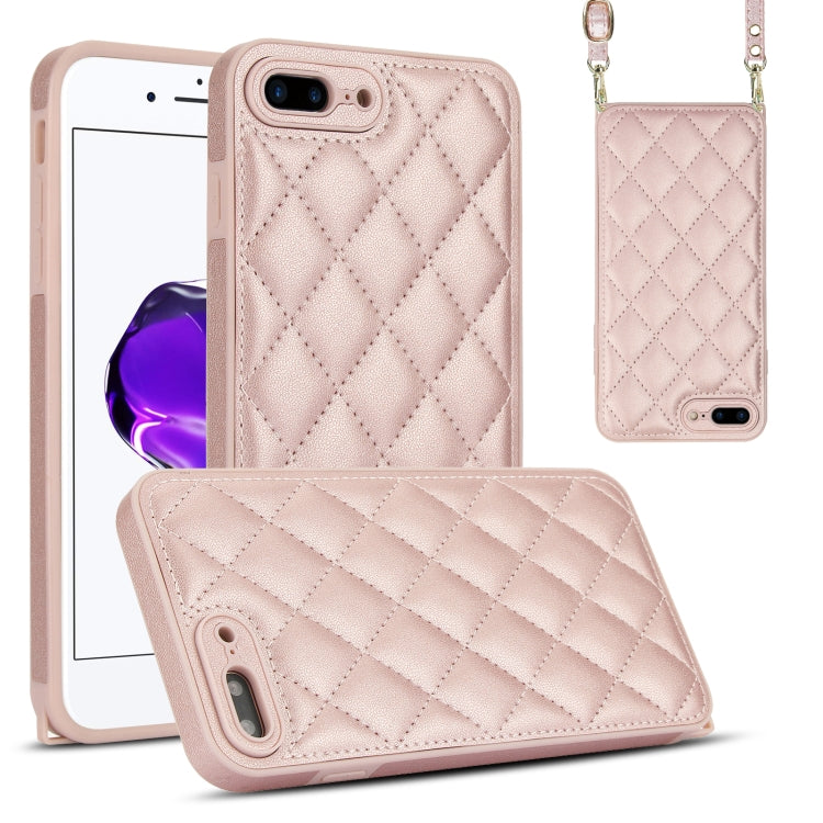 Funda para Teléfono iPhone 8 Plus/7 Plus Textura Rómbica y Cordón Doble (Oro Rosa)