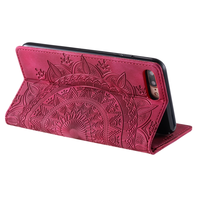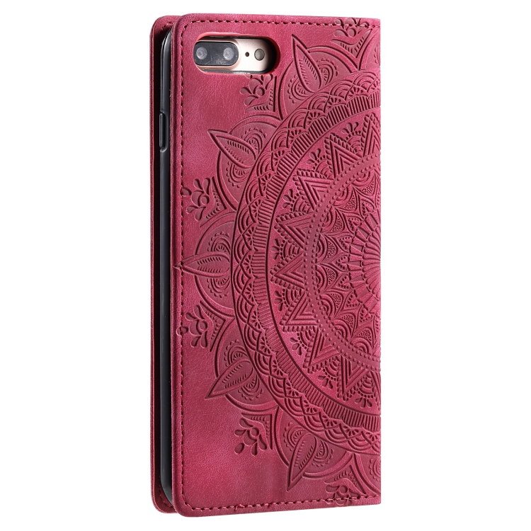 Funda para teléfono iPhone 8 Plus/7 Plus cuero magnético con relieve de tótem (Rojo)