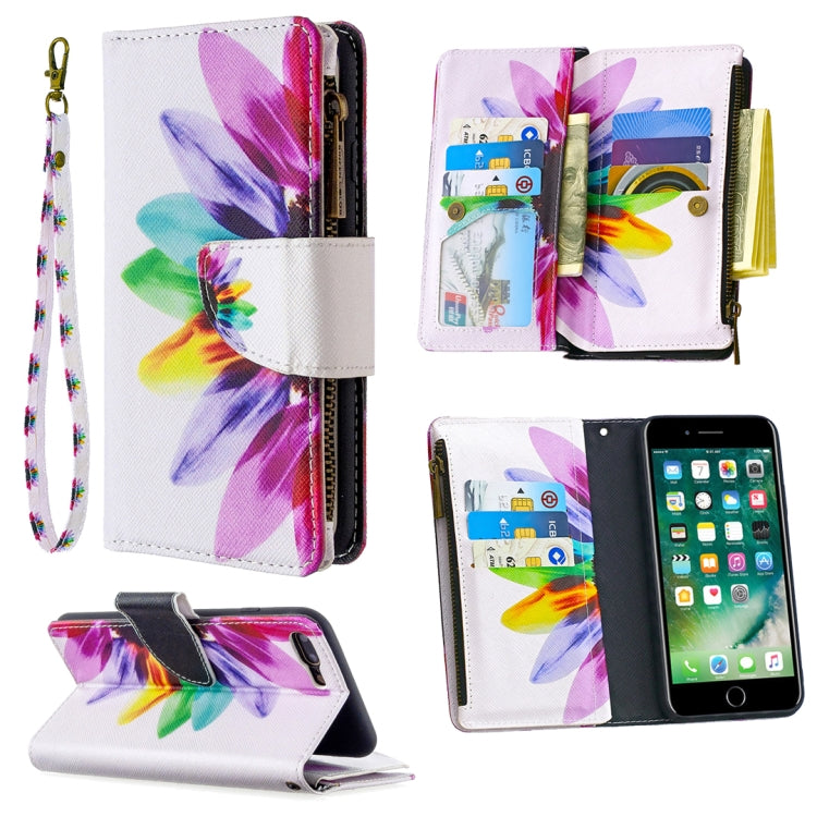 Funda de Cuero iPhone 8 Plus y 7 Plus Patrón de Dibujo Cremallera con Soporte y Ranuras para Tarjetas (Sun Flower)