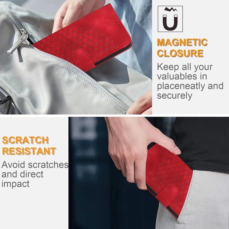 Funda de Cuero para iPhone 16E Yx0060 con Relieve de Cabeza de Elefante y Cordón (Rojo)