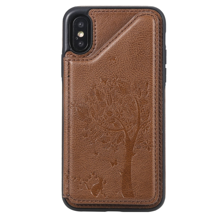 Estuche Protector para iPhone X Cat Tree Embossing Pattern a Prueba de Golpes con Ranuras y Marco de Fotos (Marrón)