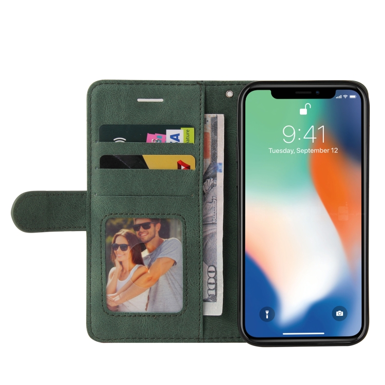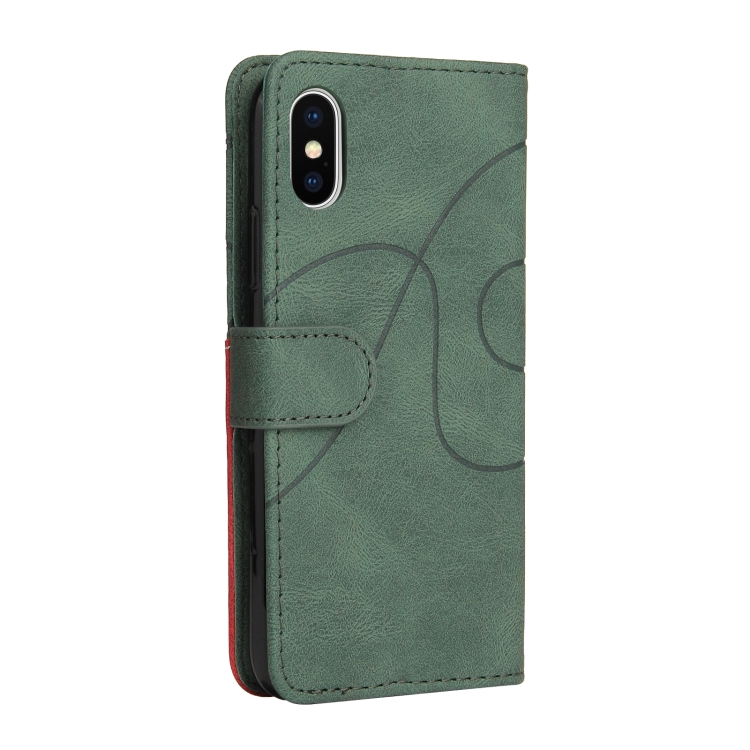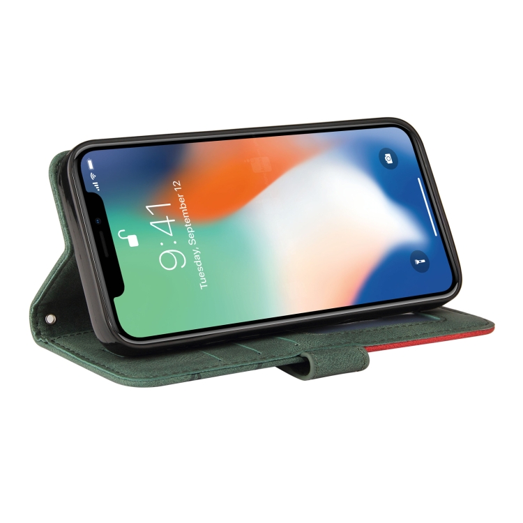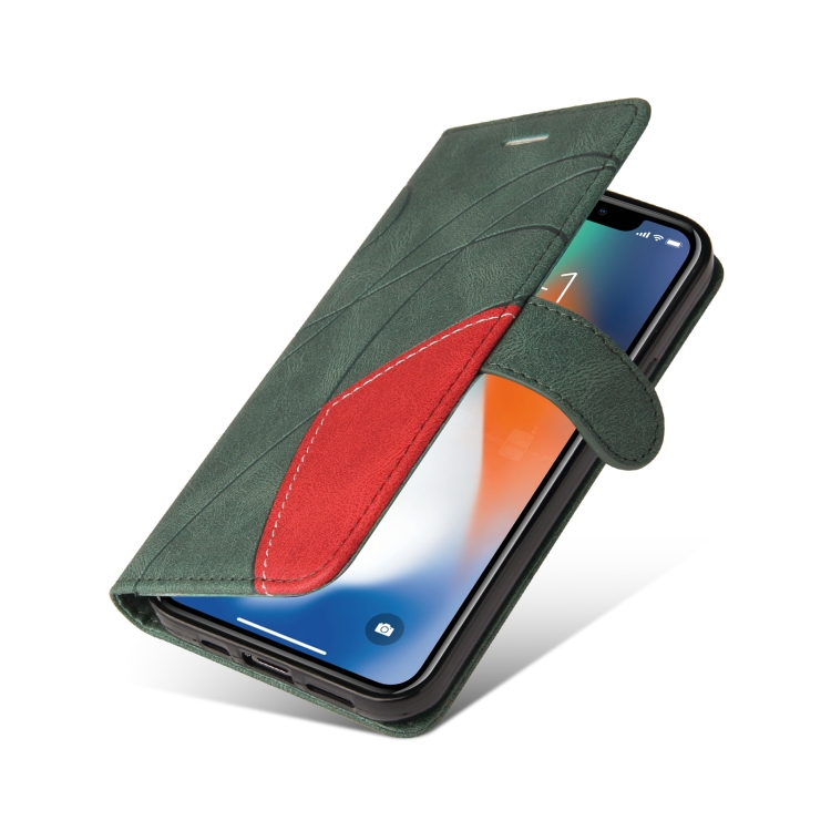 Estuche de Cuero PU para iPhone X Xs Tapa Horizontal Empalme Dos Colores Soporte Ranuras Tarjetas Billetera (Verde)