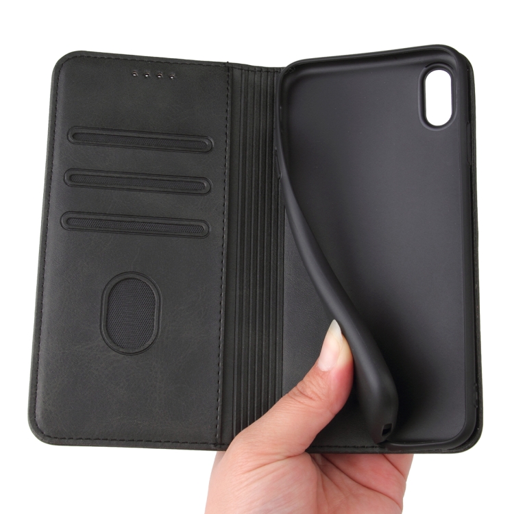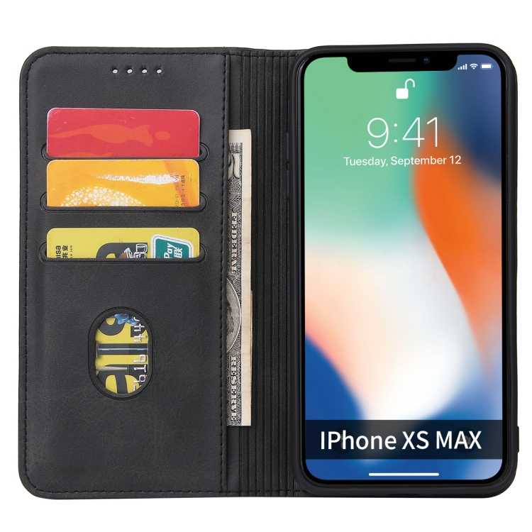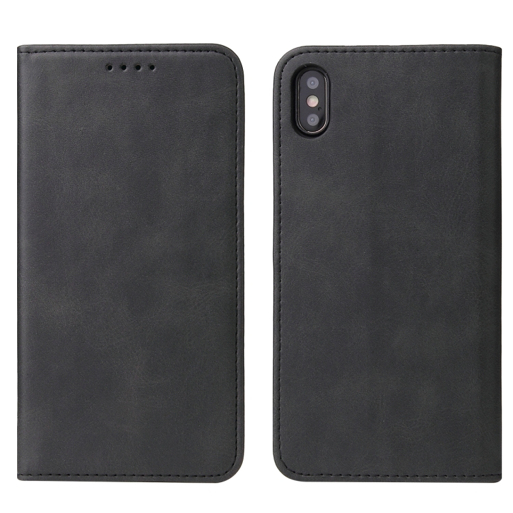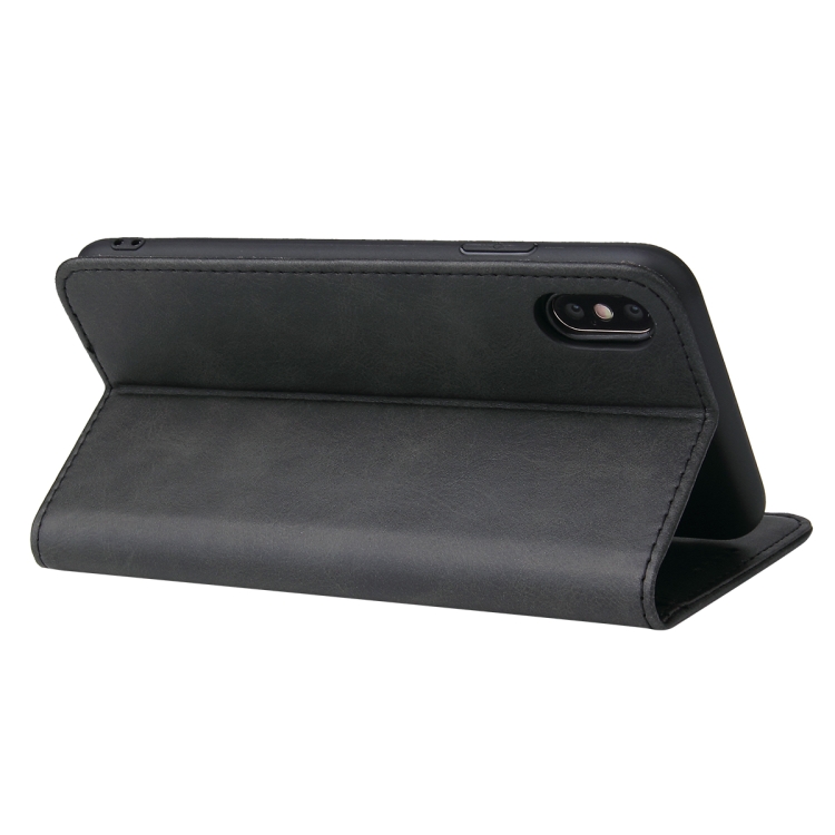 Funda para iPhone X / Xs de Cuero con Tapa Horizontal Magnética, Soporte y Ranuras para Tarjetas (Negro)