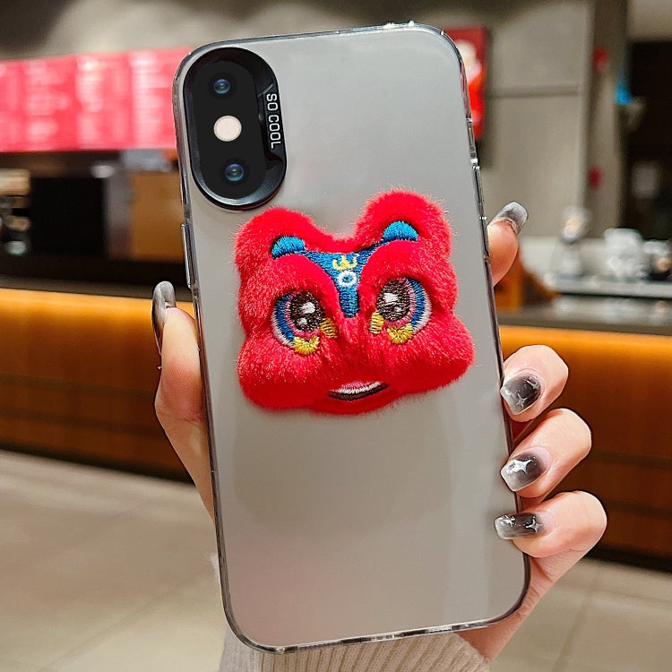 Funda para Teléfono iPhone X / Xs con Muñeco de Peluche y Danza del León Año Nuevo (Rojo, Gris)