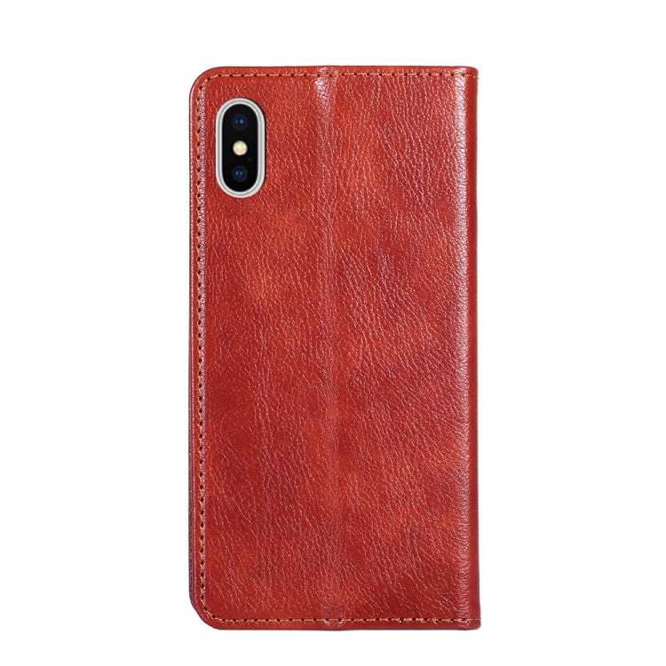 Funda para iPhone X / Xs Pu + TPU Cuero con Tapa Horizontal Magnética Soporte Ranura Tarjeta Billetera (Marrón)