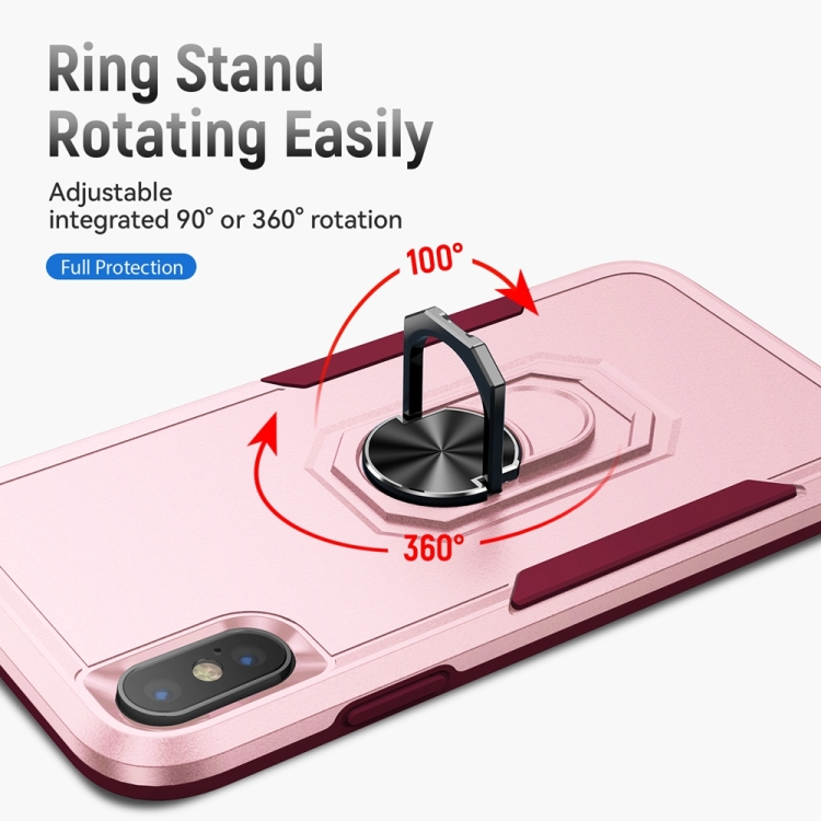 Funda para teléfono iPhone X Xs Ring Kickstand a prueba de golpes (Rosa)