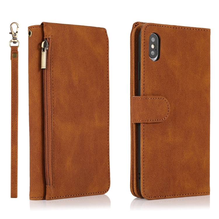 Estuche para iPhone X / Xs Crazy Horse Textura Skin-Feel con Tapa Horizontal Soporte Ranuras y Cordón (Marrón)