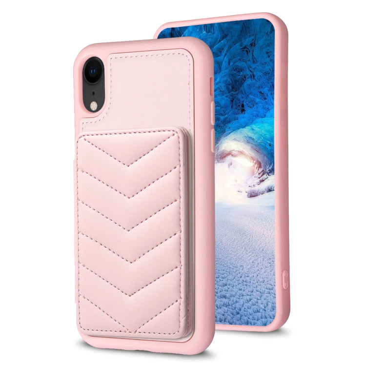 Funda para teléfono Bf26 Wave Pattern para iPhone Xr con soporte para tarjetas (Rosa)