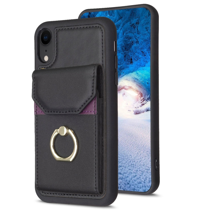 Funda para Teléfono iPhone Xr Bf29 con Soporte para Anillo y Bolsa para Tarjeta (Negro)