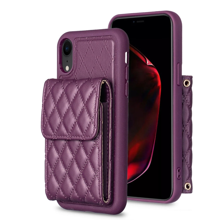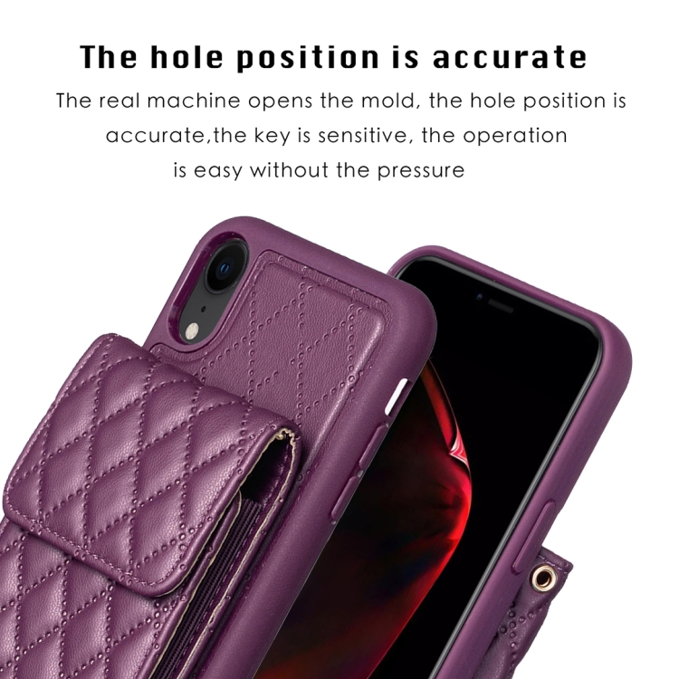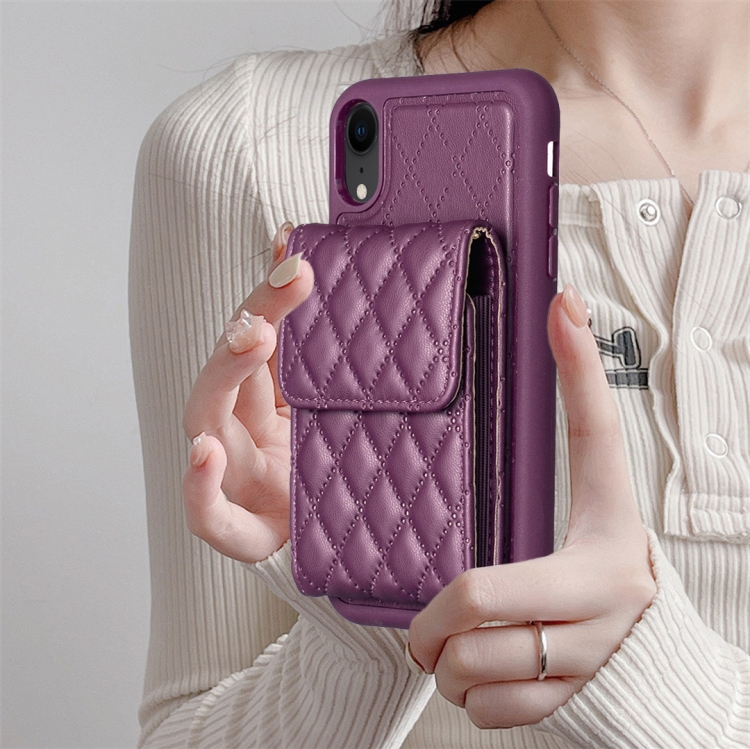 Estuche de teléfono iPhone Xr Cuero Rómbico con Billetera Vertical (Púrpura Oscuro)