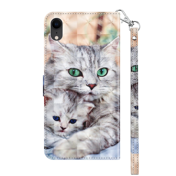 Estuche para Teléfono iPhone Xr Cuero Pintado en 3D Dos Gatos Amorosos